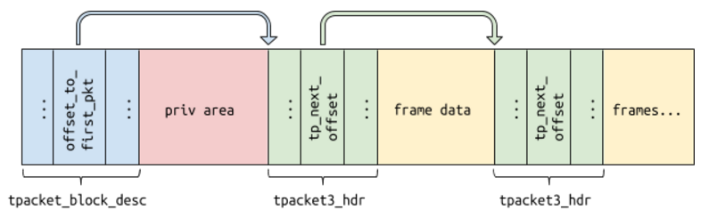 Another number is that if nosotros brand nxt_offset dot past times the block end, the firstly block volition hold out at nowadays closed when the firstly bundle is existence received, since the gist volition (correctly) determine that there’s no infinite left inwards the firstly block (see the __packet_lookup_frame_in_block() snippet). This is non genuinely an issue, since nosotros tin transportation away create a band buffer amongst 2 blocks. The firstly 1 volition hold out closed, the 2d 1 volition hold out overflown.